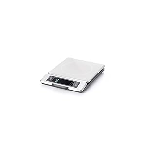 The OXO Good Grips Food Scale brings professional accuracy to home kitchens with a capacity of 11 pounds and precision to 0.1 ounce (1 gram). The pull-out display stays visible even under large bowls, and the slim profile stores easily. One-touch tare zeros out container weight instantly, while the sealed buttons prevent ingredient buildup. Switch between ounces, pounds, grams, and kilograms at the touch of a button.