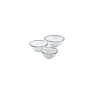 The Pyrex Glass Mixing Bowl Set includes three essential sizes for every kitchen task—from whisking eggs to tossing salads to mixing large batches of cookie dough. Made from durable tempered glass, these bowls are microwave-safe for melting butter, freezer-safe for marinating, and dishwasher-safe for easy cleanup. The clear glass lets you monitor mixing, and the nonporous surface won't absorb odors, stains, or flavors from acidic ingredients.